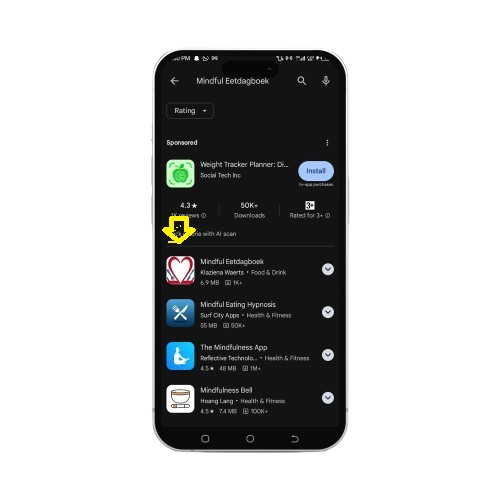 Browse through the search results to find the Mindful Eetatdagboek app. Ensure you verify the app by checking the developer’s name and icon to confirm it’s the correct one